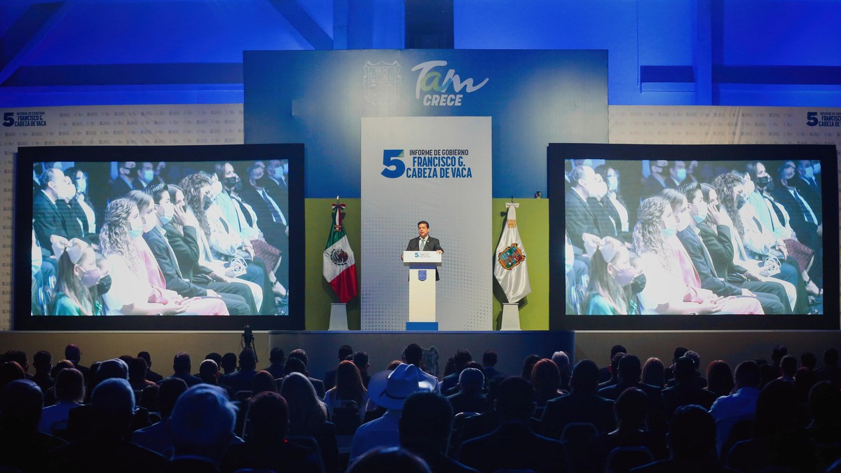 El quinto Informe de Gobierno de Francisco García Cabeza de Vaca se llevó a cabo en el Polyforum de Ciudad Victoria, luego de llevar a cabo la entrega del documento que contiene el estado que guarda la administración pública estatal, ante el Congreso de Tamaulipas.