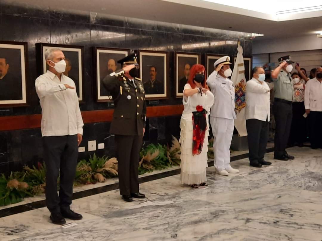 La gobernadora recibió del Décimo Batallón de Infantería el lábaro patrio, con el cual se acercó al balcón del Palacio de Gobierno de Campeche.