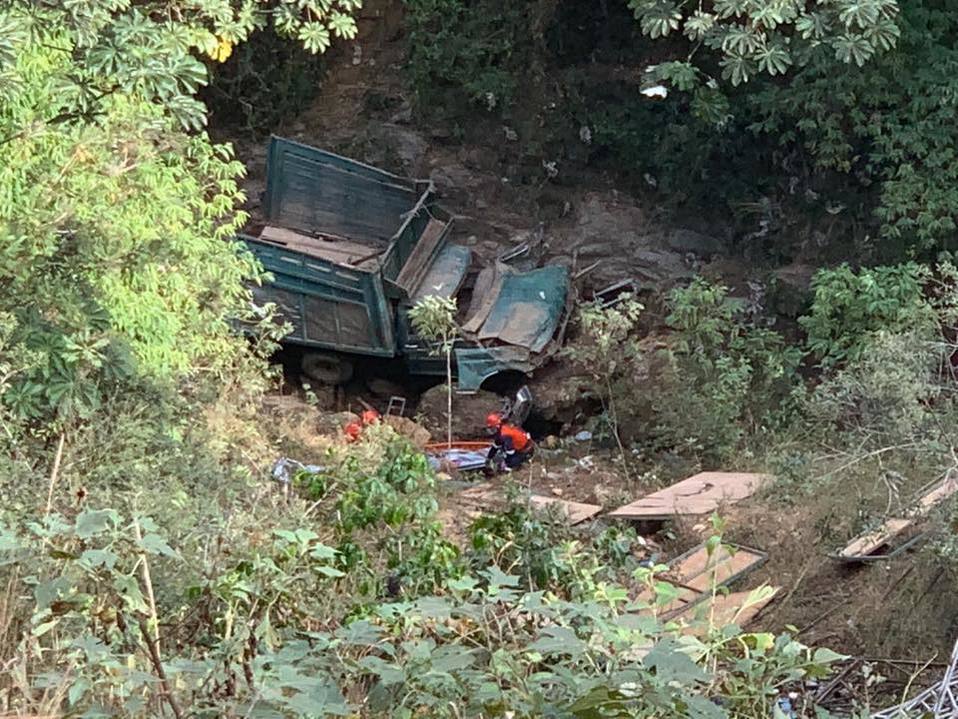 Hoy personal de Protección Civil del estado y peritos de la FGE levantaron cinco cadáveres que estaban dentro de una camioneta que se precipitó hacia un barranco con más de cien metros de profundidad, los otros cinco fueron rescatados el día anterior.