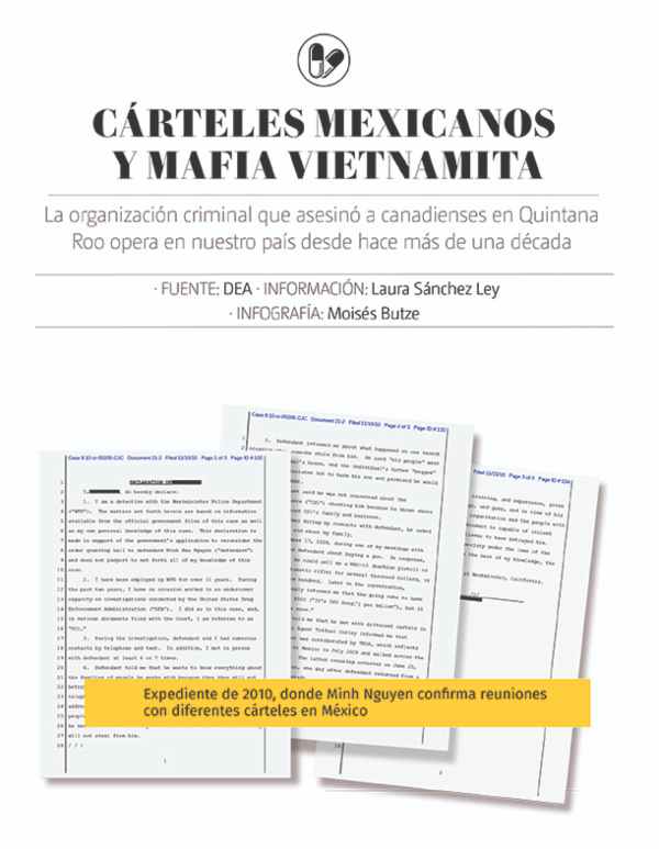 MILENIO tuvo acceso a la declaración del agente que se infiltró en la organización que hoy mantiene fuerte presencia en Quintana Roo y el pasado mes de enero asesinó a dos personas en Xcaret. Los primeros rastros de esta mafia aparecen en un expediente que se presentó en una corte de California en 2010, durante el juicio de Minh Nguyen.
