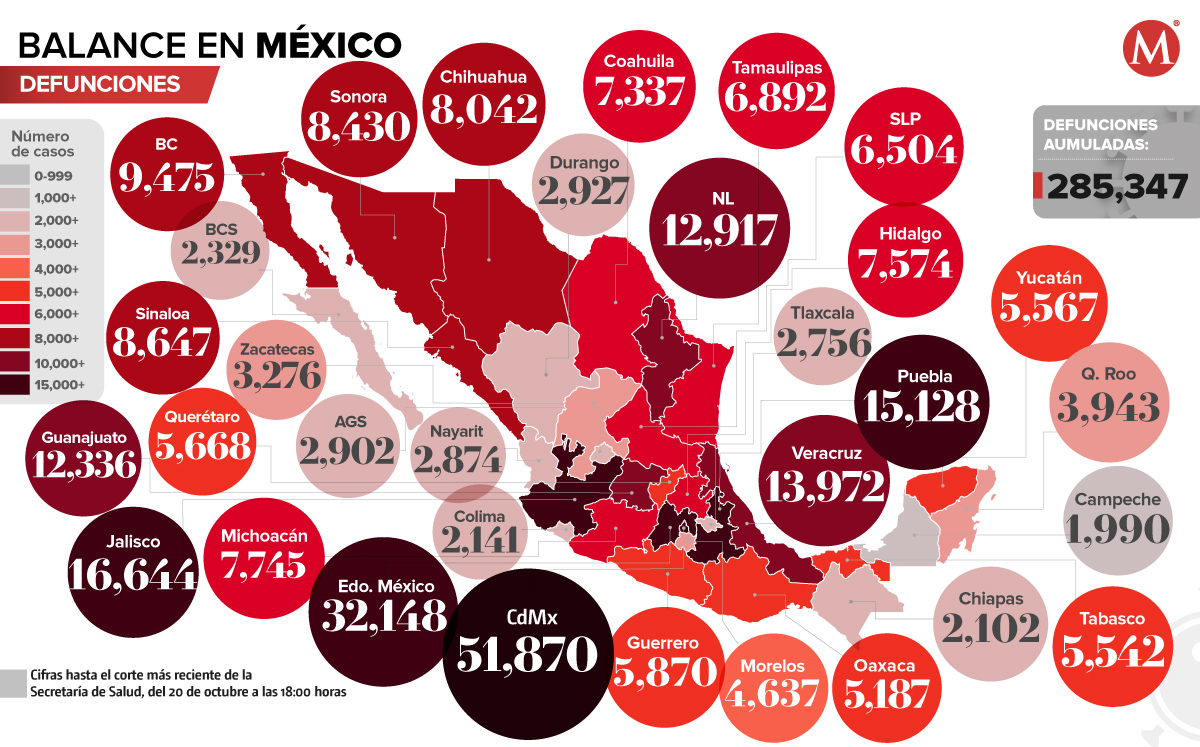 Ciudad de México sumó 48 decesos en las últimas 24 horas; en el Estado de México reporta 17 muertes, continúa como la segunda entidad con un mayor acumulado; en Jalisco murieron 72 y en Puebla 55.