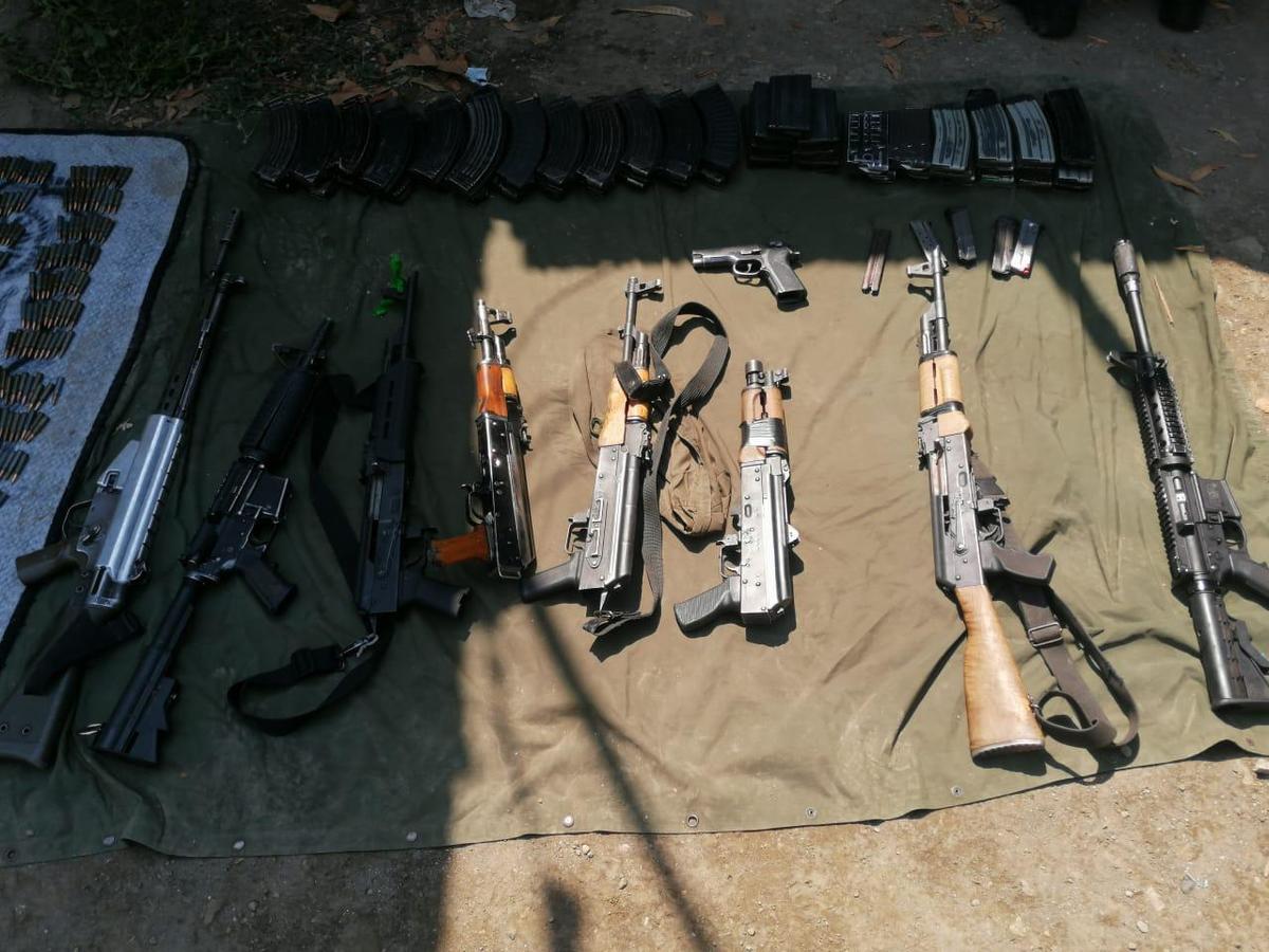 Elementos del Ejército y policías estatales decomisaron un arsenal, droga y vehículos con reporte de robo, en el municipio de Parácuaro, Michoacán.