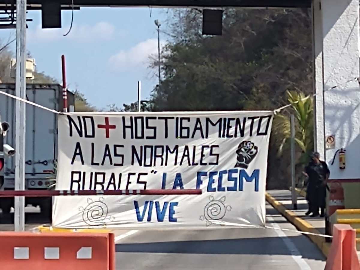 Los estudiantes, arribaron hasta la entrada al puerto a bordo de un autobús y se instalaron casi de inmediato en los puestos de cobro donde empezaron a pedir a los automovilistas que entraban y salían de este destino una "cooperación voluntaria" de 50 pesos para comprar alimentos y medicinas.