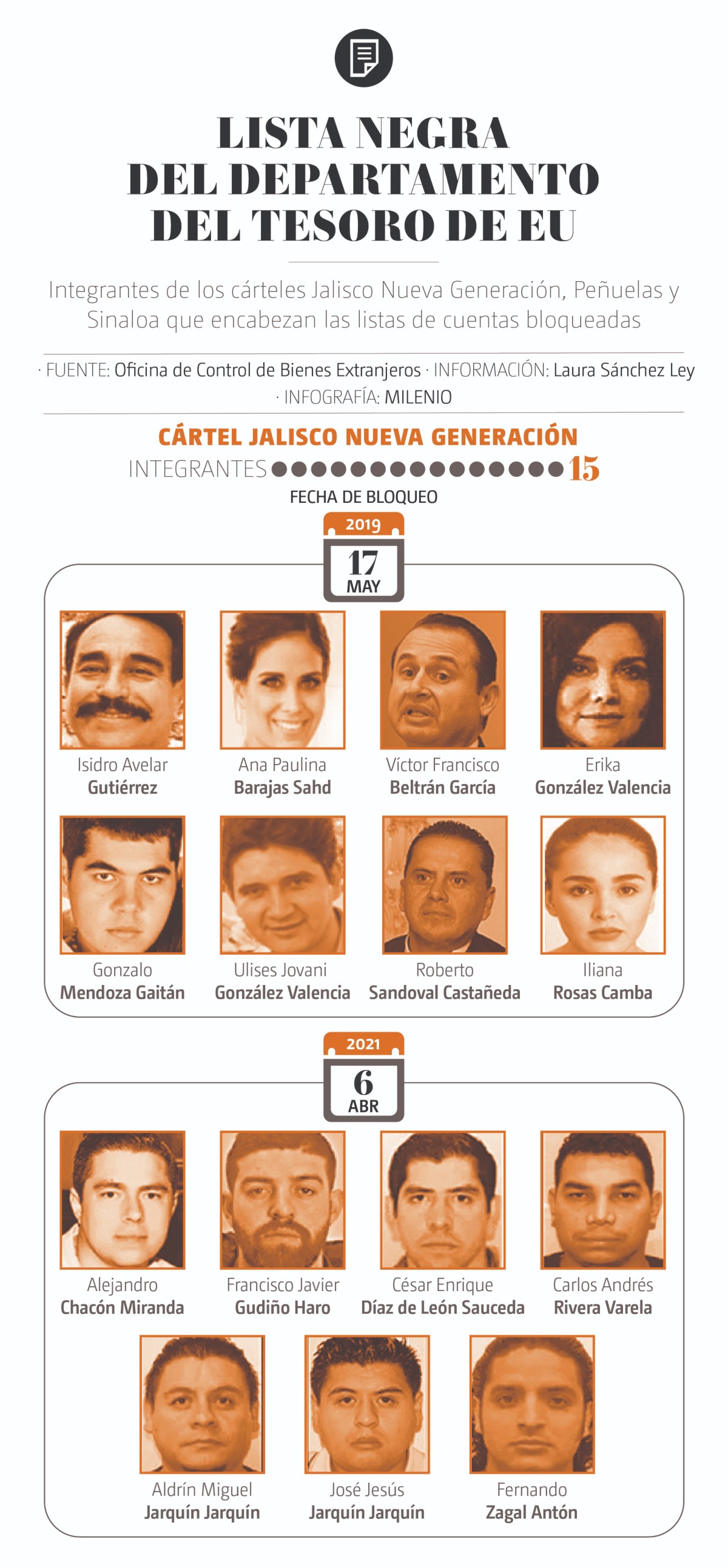 En los últimos tres años, el Departamento del Tesoro de Estados Unidos ha congelado cuentas bancarias y bloqueado el uso de propiedades a una treintena de operadores de los cárteles Jalisco Nueva Generación (CJNG) y Sinaloa, así como a una célula delictiva encabezada por Jesús El Chuy González Peñuelas, a quien vinculan con el narcotraficante Rafael Caro Quintero.