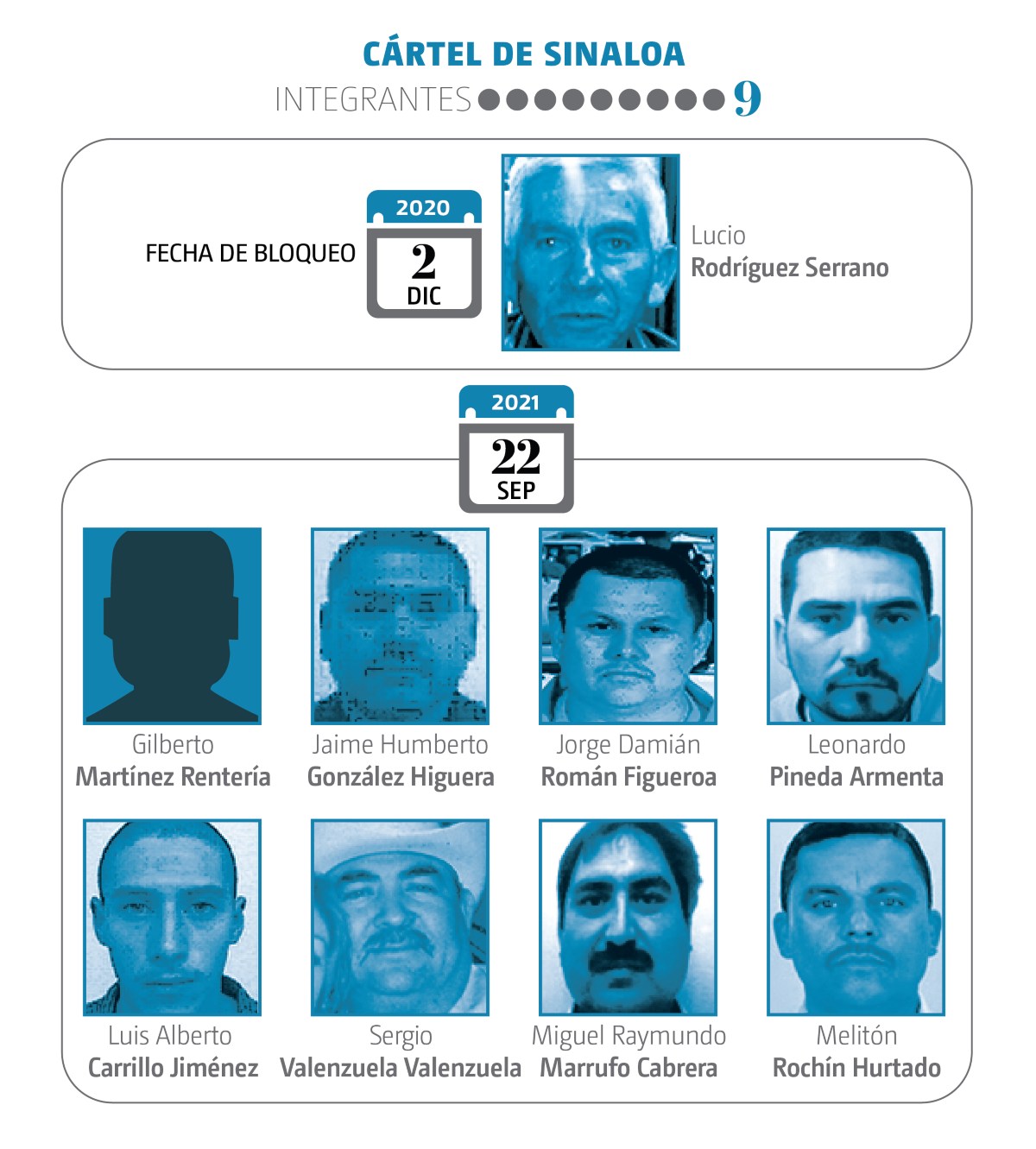 Además del Cártel Jalisco, que encabeza la cifra de cuentas congeladas, el Departamento del Tesoro ha bloqueado los recursos económicos de nueve integrantes del Cártel de Sinaloa.