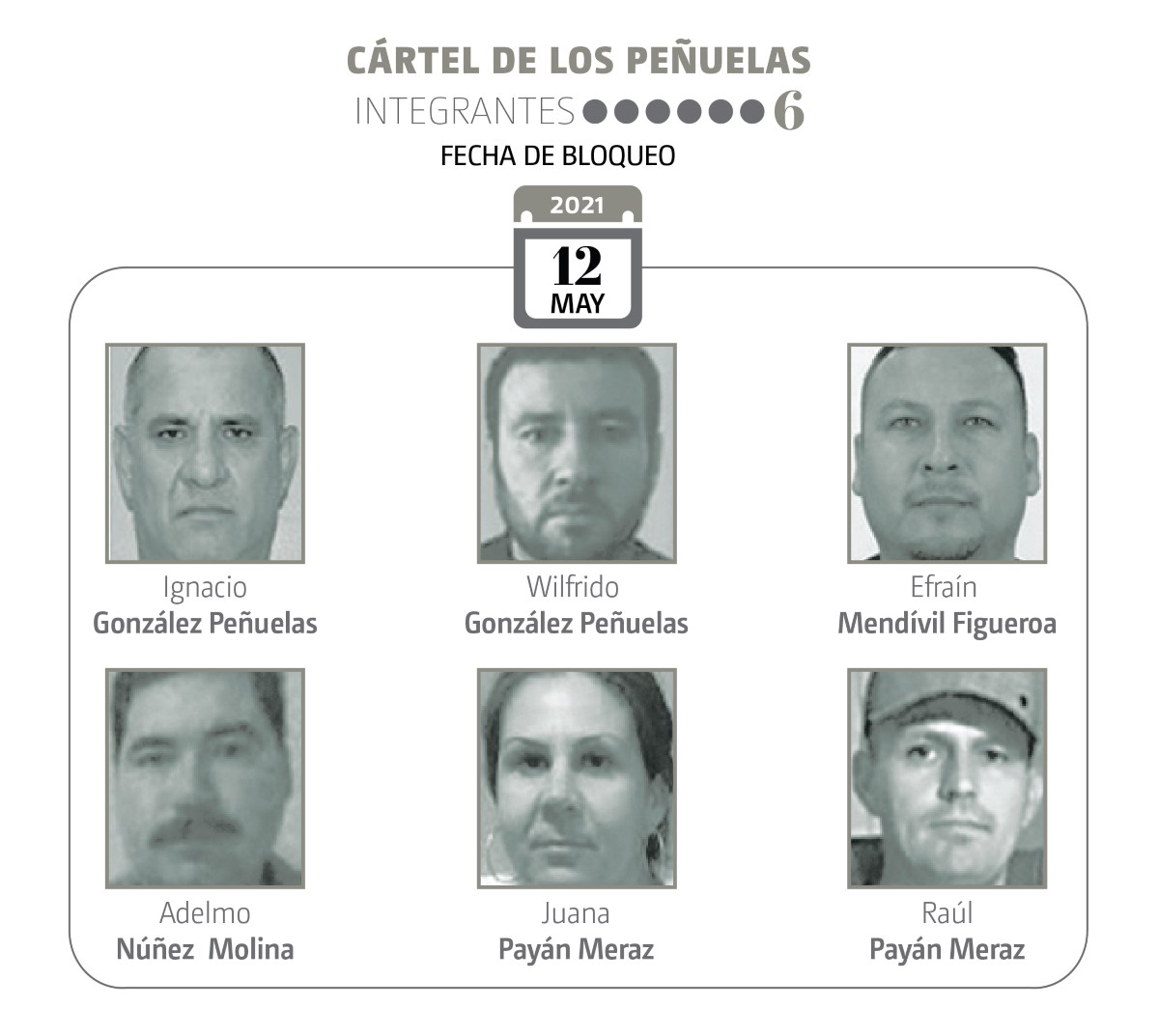 En 2012, la OFAC también incluyó por primera vez al narcotraficante Jesús, El Chuy, González Peñuelas y a su organización de tráfico de drogas, catalogada por Estados Unidos como una de las empresas criminales que produce más heroína, goma de opio y fentanilo.