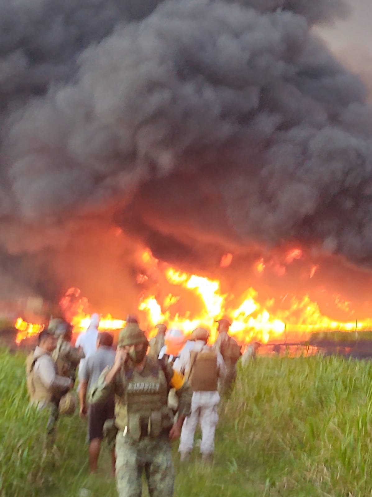 Ante la magnitud del derrame y del fuego que se prolongó por horas, también llegaron en apoyo para controlar la emergencia, elementos de la Marina, Ejército y la Policía Municipal de Huimanguillo.