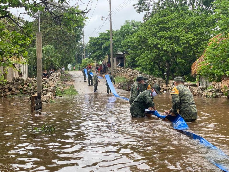 Elementos del Ejército implementaron el Plan DN-III-E en el estado de Yucatán con motivo de la Tormenta Tropical 'Cristóbal'. La Secretaría de la Defensa Nacional envió elementos para ayudar a las comunidades que se inundaron por las lluvias.