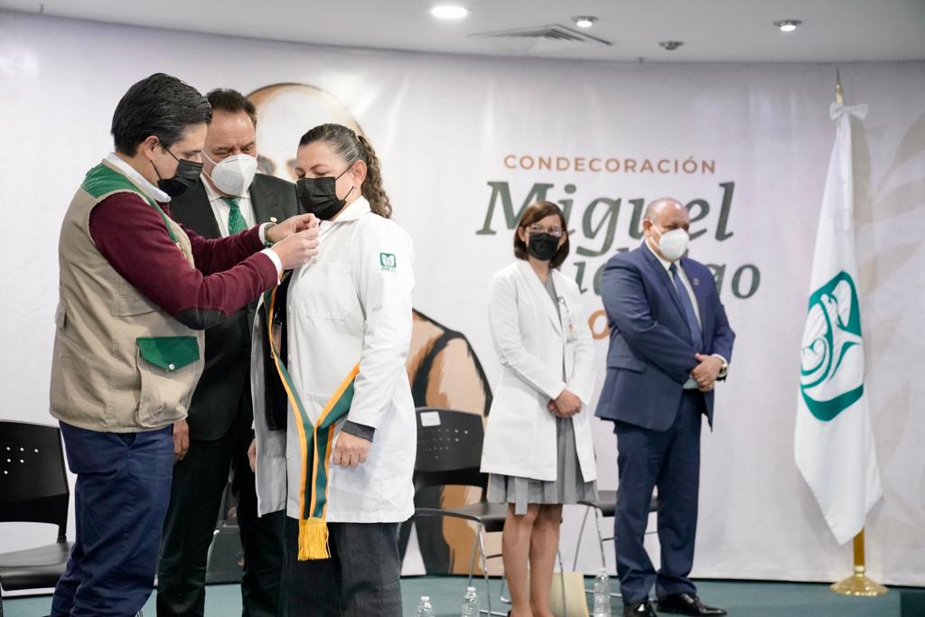 Un grupo de 25 médicos, enfermeras y trabajadores de la salud del Instituto Mexicano del Seguro Social (IMSS) en Baja California recibieron la condecoración Miguel Hidalgo en Grado de Banda.