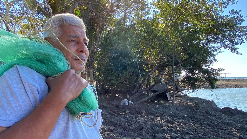Pedro Arizmendi, pescador de la zona lamenta que ya no hay forma de trabajar en El Farallón.