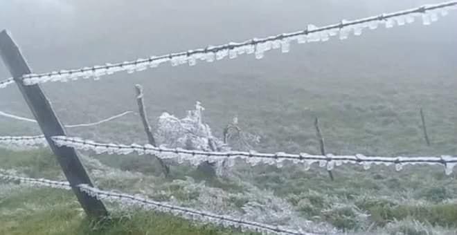 La cencellada en Las Vigas ocurre porque la humedad en forma de niebla se congela, las gotitas que forman la niebla se escarchan sobre cualquier superficie.