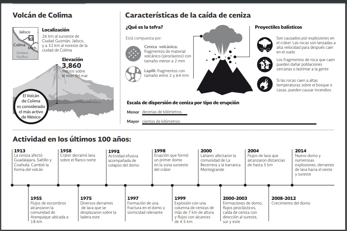 - En 1913 la ceniza afectó Guadalajara, Saltillo y Coahuila, además de que cambió la forma del volcán.