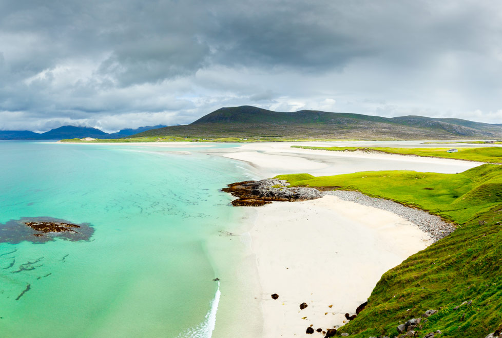 Si puede ignorar la temperatura del agua, las playas del oeste de Harris –Luskentyre, Seilebost, Huisinis– son las más hermosas de Gran Bretaña, con arenas blancas, agua color turquesa y un panorama de montañas cubiertas de brezos. Hospédate en Fir Chlis, una casa de playa con capacidad para ocho personas, o en Scarista House, un hotel de seis habitaciones en una casa georgiana.