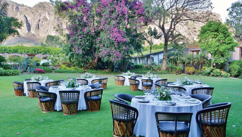 En estos espacios con una extensa gama de tonos verdes, podrás encontrar plantas endémicas de la región, como ahuehuetes o amates, una importante selección de cactáceas, buganvilias y hierbas que utilizan en su cocina y sus tratamientos de spa y temazcal.