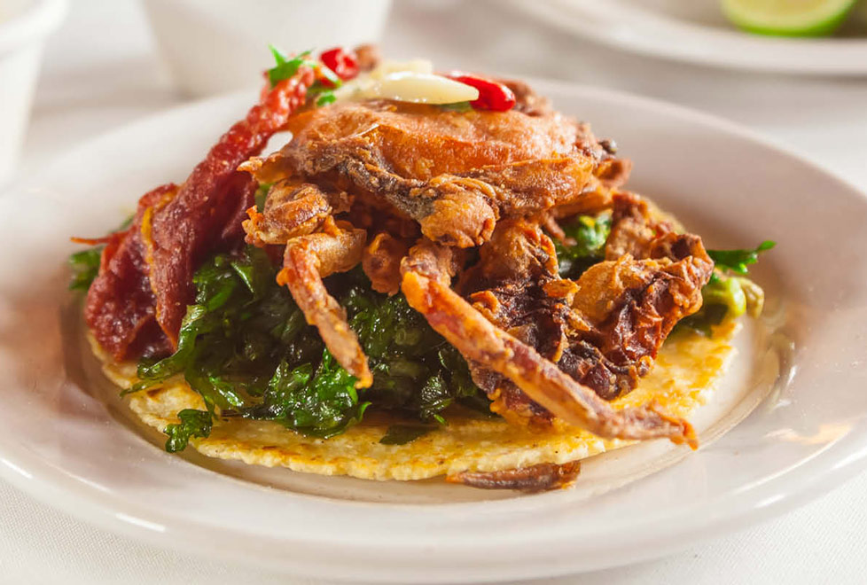 El menú es muy variado, pero no puedes dejar de probar la comida típica de Veracruz, como el pescado zarandeado y el chilpachole de jaiba. Te recomendamos el ceviche verde de atún y los deliciosos tacos de jaiba desnuda. Refréscate con los cocteles tradicionales, como el Menyul veracruzano, que lleva ron añejo, jerez dulce, jerez seco, azúcar, hierbabuena y un golpe de angostura.