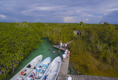 En este sitio también se pueden apreciar vestigios mayas y los manglares, donde descansan varios tipos de aves, cocodrilos y otras especies.