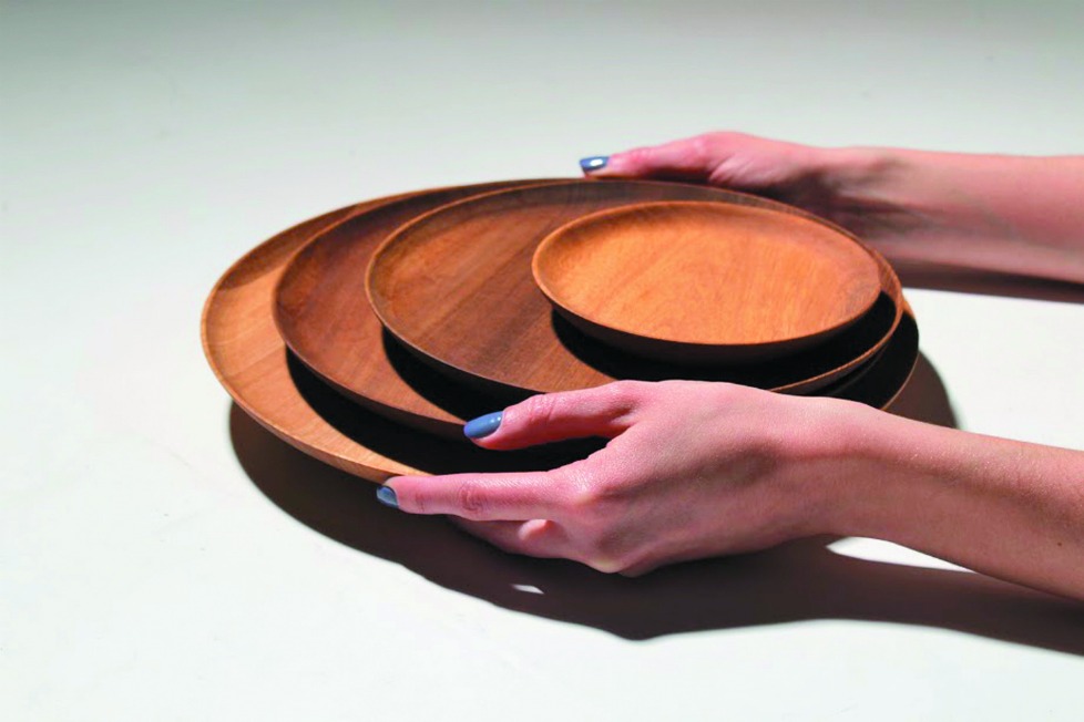 Para Santiago y María Jaime el trabajo de la madera no es novedad, pues durante un buen tiempo colaboraron con una empresa dedicada a la carpintería residencial. Su interés por producir objetos utilitarios de madera tropical, que combinaran diseños orgánicos con técnicas artesanales, los llevó a fundar Chechen Wood Design . Estos platos son un ejemplo de su trabajo.