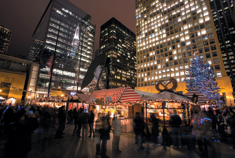 Continúa con el ambiente navideño en el Christkindlmarket Chicago, que desde hace 23 años llegó para instalarse en la Plaza Daley. Este mercado te transportará hasta Nuremberg por su diseño en acogedoras cabañas de madera que simulan una villa alemana. Entre sus pasillos encontrarás artesanías y regalos para llevar a casa, así como delicias de la cocina germánica como strudel, schnitzel y el popular Glühwein, un vino caliente con especias que se sirve en adviento.