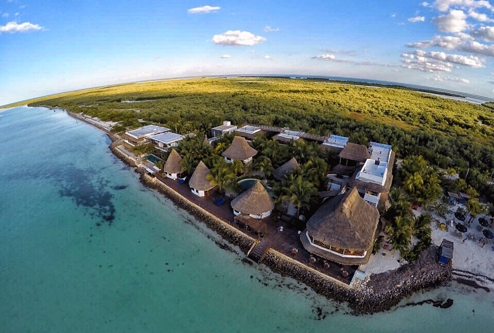 Construido de adobe, palma y madera, el lugar tiene 27 habitaciones con amenidades ecológicas hechas por las comunidades que viven en la isla. Su ubicación, al final de la costera hotelera, ofrece mayor privacidad y, sin duda, es un sitio ideal para deleitarse con el mar de Holbox.