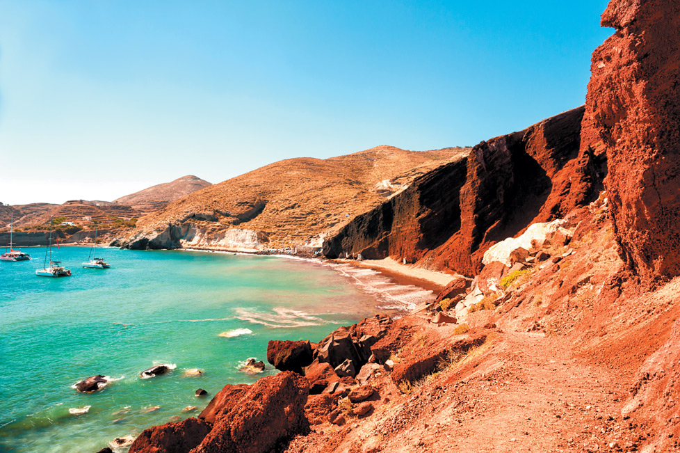Entre las excursiones más emblemáticas, se encuentra un recorrido en coche para conocer las magníficas playas que abren el Mar Egeo. Kamari, la playa más famosa por su arena negra y muros verticales de piedra volcánica es una de las que puedes conocer conduciendo por la isla. Si te gusta la aventura, no te puedes perder las vistas panorámicas de la Playa Roja y la Playa de Perisa, todas con aguas cristalinas que rodean Santorini.