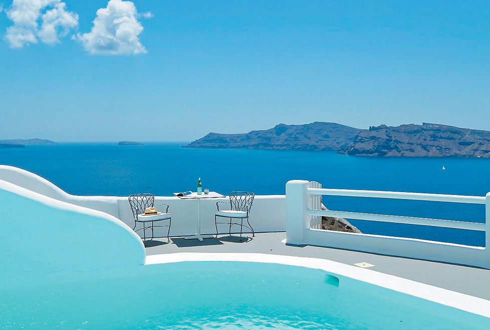 La mayoría de los hoteles cuentan con vistas increíbles y están llenos de tranquilidad pero nuestra sugerencia son las majestuosas suites del Kirini Santorini, ubicadas en el acantilado.