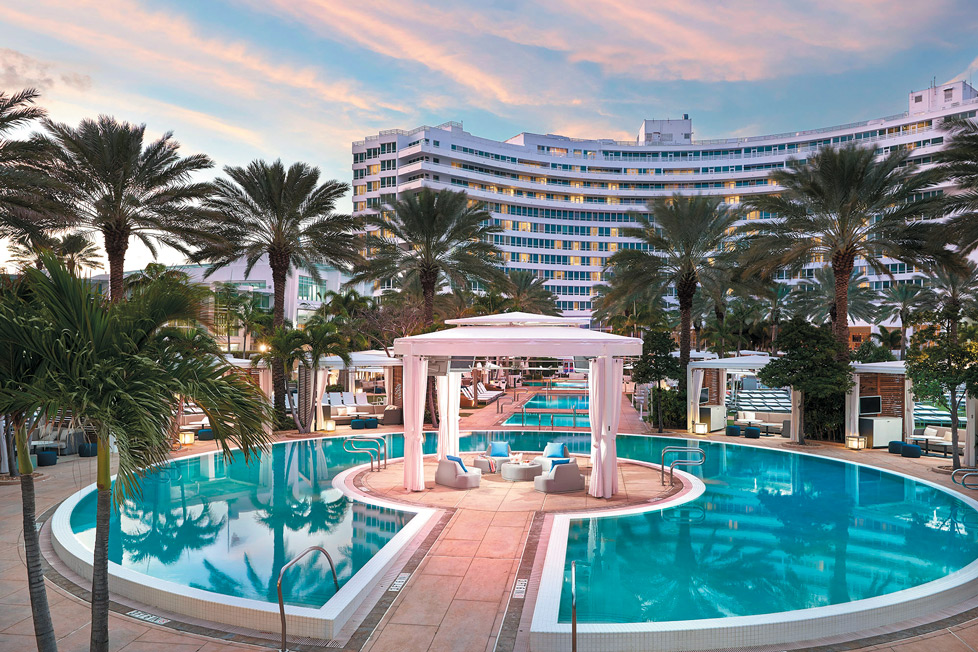 Uno de los hoteles más icónicos, el Fontainbleau Miami Beach es conocido por sus múltiples piscinas, aire glamoroso y restaurantes de fama mundial. Su emblemático diseño es una mezcla de la época dorada de Miami y el lujo moderno actual.