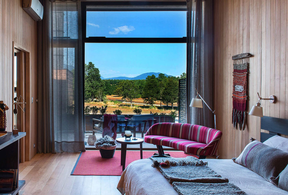 En medio de una finca de 22 hectáreas, se encuentra este complejo ecológico rodeado de lagunas glaciales, ríos y vistas al volcán Villarrica. El lodge conserva la esencia mapuche de la región con artesanías, antigüedades restauradas y tejidos chilenos, al mismo tiempo que incorpora elementos contemporáneos como los muebles, obras de arte y grandes ventanales que propician la iluminación natural y la conexión con la naturaleza. Senderismo, rafting en el río, kayak, esquí, snowboard, ciclismo de montaña, cabalgatas en la cordillera y vuelos panorámicos en helicóptero, son sólo algunas de las actividades que ofrece la región. Aquí, todas las excursiones se adaptan tu interés y nivel de estado físico.