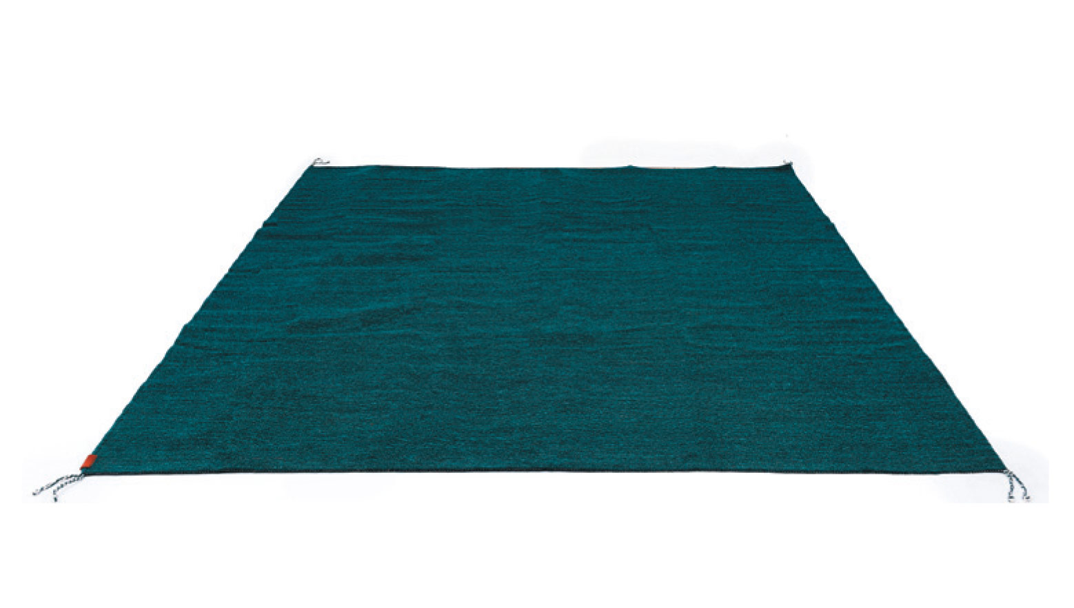 La inspiración en las formas geométricas simples llevó a Arudeko a colaborar con artesanos mexicanos para lanzar la colección Granada. Cada pieza es tejida en telar de pedal con lana nacional utilizando semillas y plantas para obtener los colores. Su tono mostaza y acentos azules crean una composición ideal para cualquier espacio.