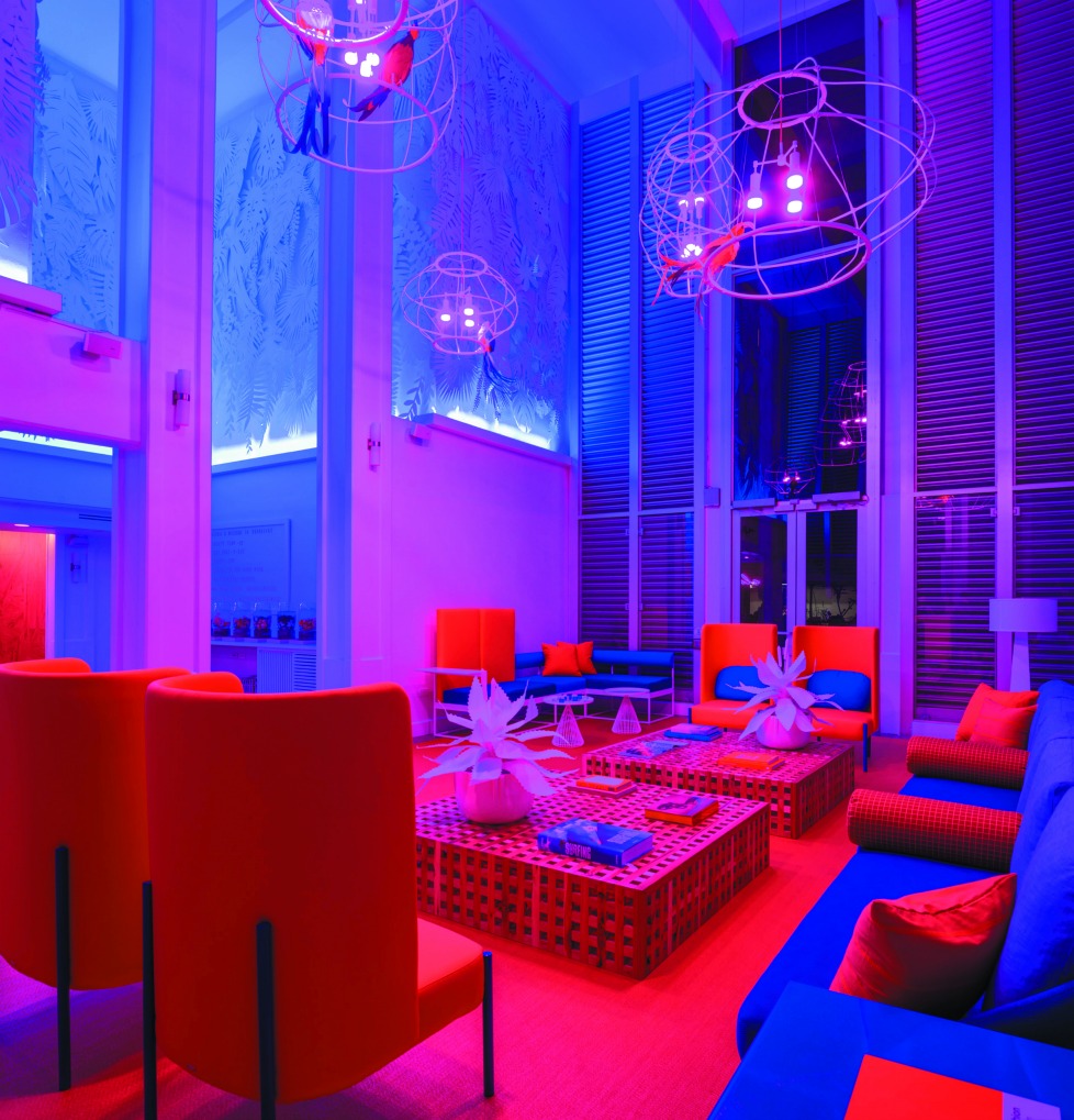La renovación del interior del hotel fue realizada bajo el concepto de Nature Meets Neon, elaborado por el colectivo de creativos Army of Moon People, e implementado a nivel espacial mediante el diseño de la firma americana BHDM Design.