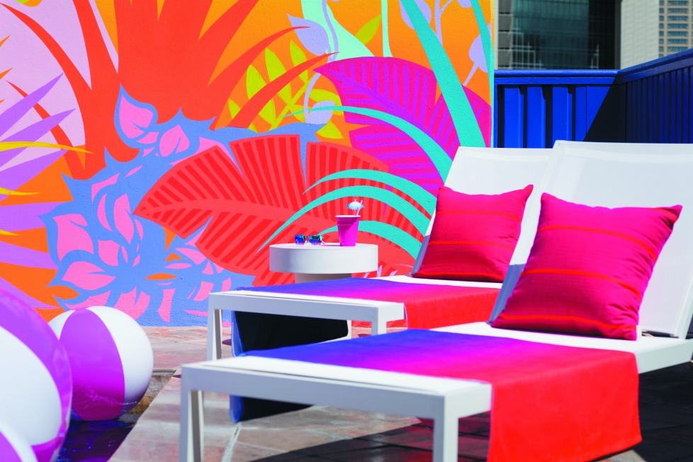 Sobre la azotea, se ubicaron un deck y la alberca donde se puede disfrutar de un mural único realizado también por DJ Neff. La piezas de arte, diseñadas por el mismo artista, fueron inspiradas por la idea del crecimiento, que se representa por el juego de colores, de composiciones y formas que se muestran a través de los murales de la alberca. El diseño fresco del hotel permitió que el artista pudiera experimentar con una paleta de colores brillantes neón, transmitiendo una perspectiva única de la flora endémica.
