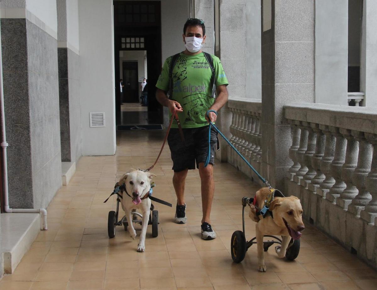 Sobre las ruedas adaptadas a las patas traseras de sus compañeros caninos, aseguró que buscó a un conocido que es especialista en herrería, quien mediante diseños logró construir dichas prótesis que han hecho la vida de los perros más amigable.