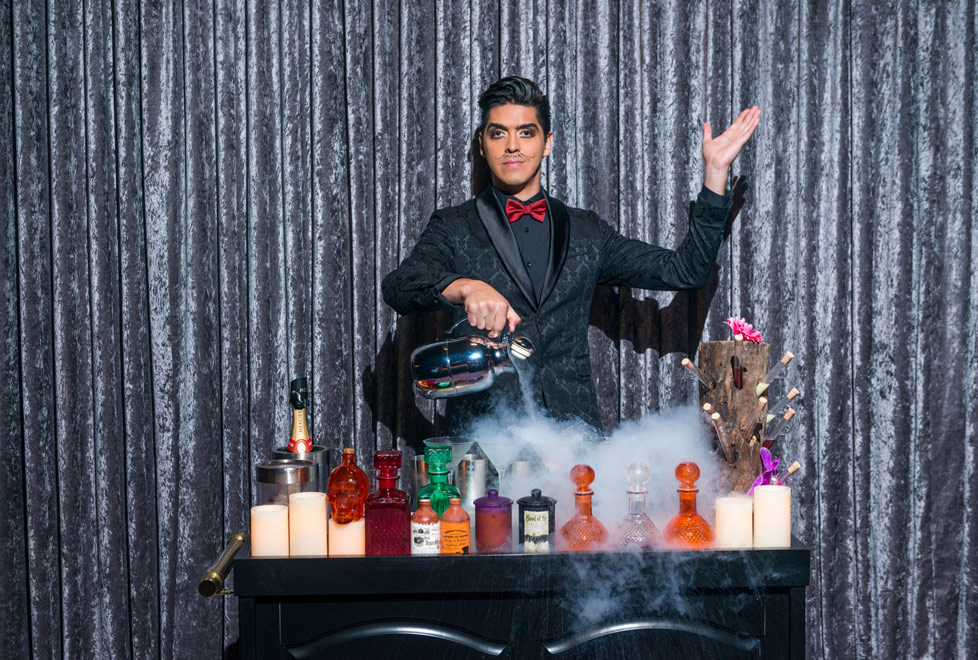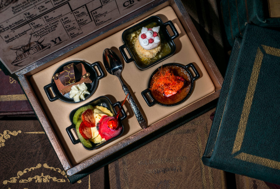 Ahí nos esperaba un enigmático y simpático mago, quien entre acto y acto nos ofreció exóticas bebidas hechas con “sangre de dragón” y bocadillos de “carne de unicornio”. Después del aperitivo, nos dirigimos a la mesa para paladear la cena de tres tiempos, creada por Alexis Bostelmann, chef ejecutivo de Grupo Vidanta. Después de leer el menú, lo partimos en pequeños trozos, pues la carta es comestible.