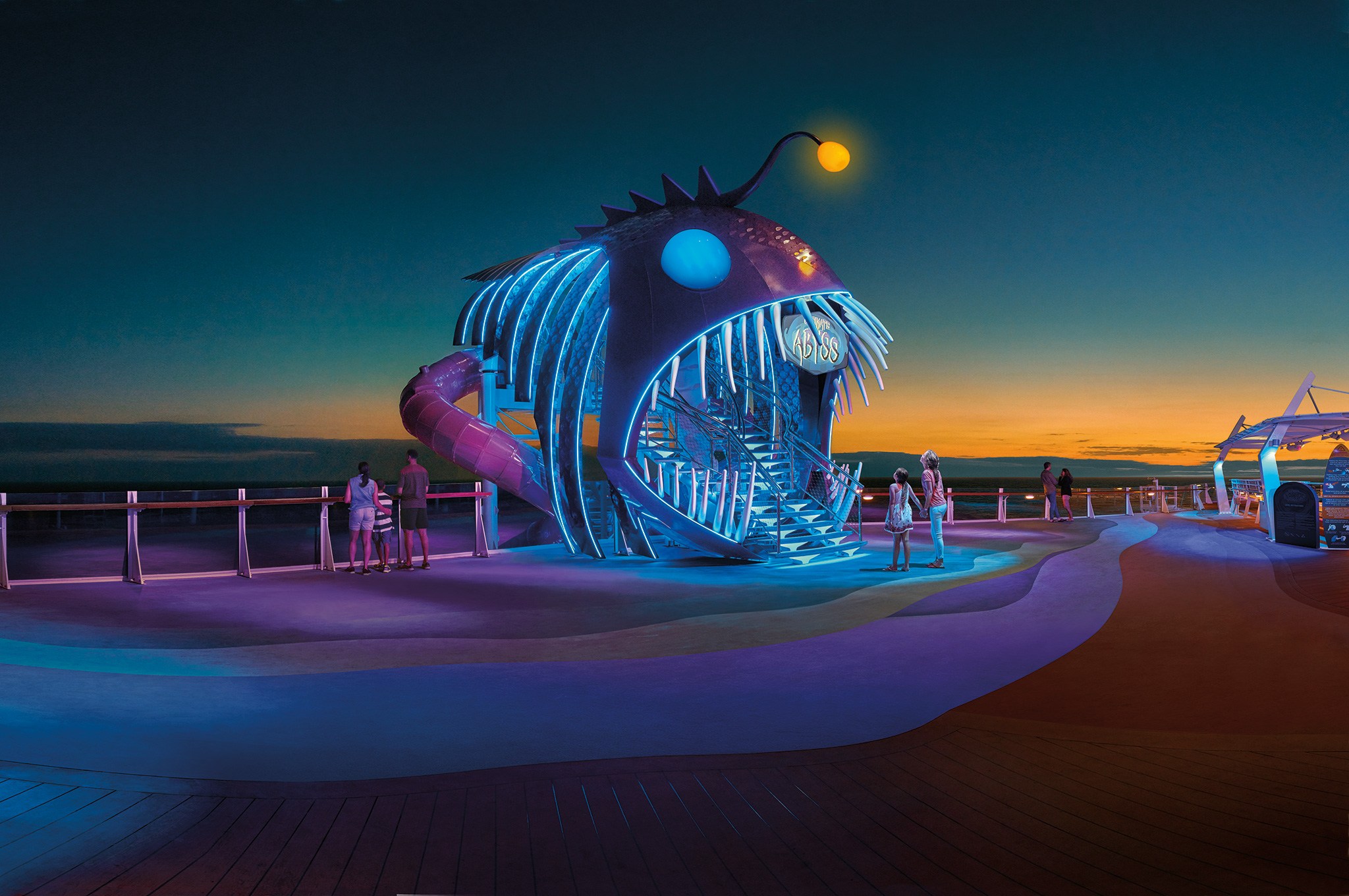 Para ellos existen estas opciones: The Ultimate Abyss: un tobogán decorado con luces, que mide 33 metros de largo que simulan una caída libre. The Perfect Storm: tres toboganes acuáticos que desembocan en las cubiertas inferiores. Splash Away Bay: un parque acuático con actividades únicas para que los chicos jueguen por horas, así como minigolf, tirolesa, canchas de basquetbol y un área de videojuegos.