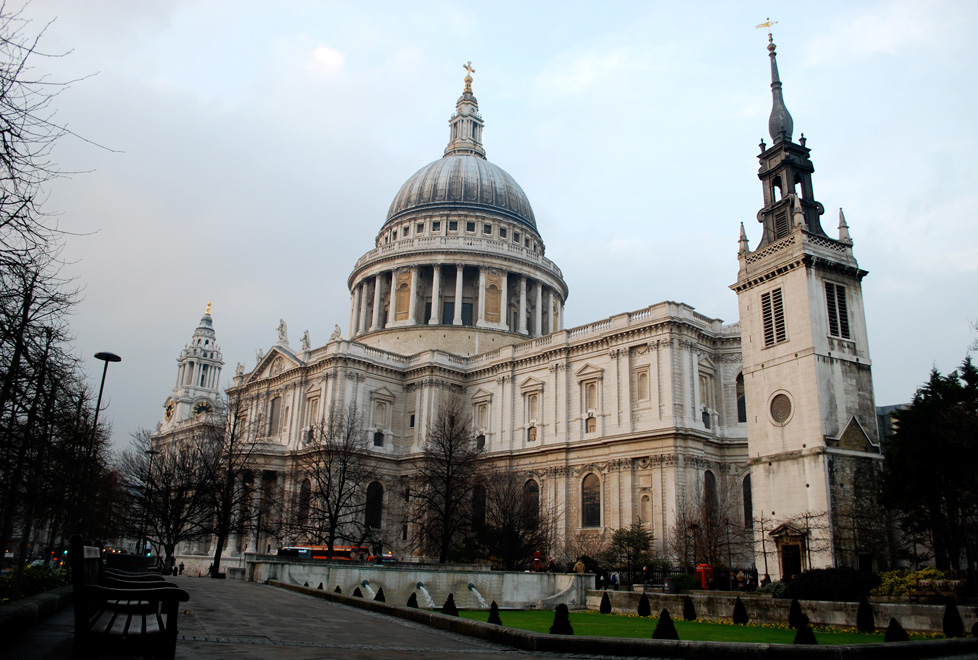 La segunda más grande del mundo, una obra maestra de Christopher Wren, en ella se han celebrado importantes ceremonias como el funeral de Winston Churchill, la boda del príncipe Carlos y Lady Diana. Su mayor atractivo es su cúpula compuesta por tres galerías circulares con increíble acústica.