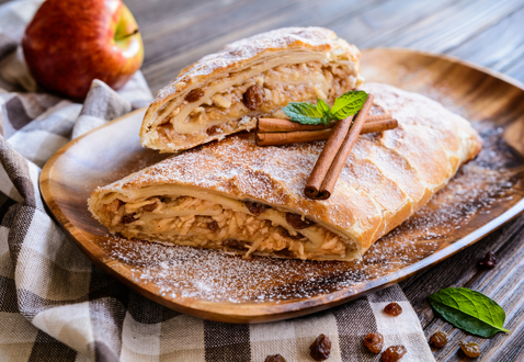 Es como el pay de manzana estadounidense, pero más irresistible. Tiene capas de manzana con canela, en una masa de hojaldre con azúcar glas. Los austriacos lo disfrutan en la tarde con café.