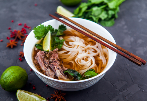 Muy parecido al ramen japonés, es una sopa con fideos de arroz, vegetales, pollo o res y mucho jengibre. Es comida callejera, deliciosa y confortante.