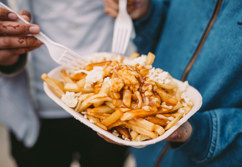 Consiste en papas fritas con queso fresco en grano y gravy. Perfecto para acompañar platos fuertes.