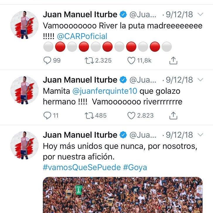 En redes sociales circularon las capturas de los mensajes de apoyo por parte de Iturbe hacia los Millonarios, acérrimo rival del equipo xeneize, a pesar de haberlos eliminado.