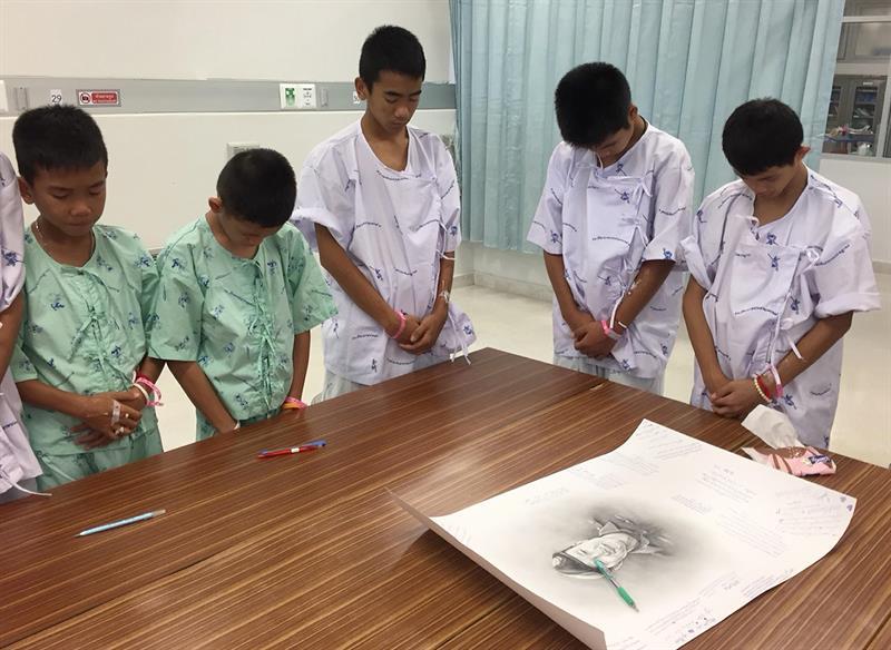 Los 13 jóvenes futbolistas rescatados tras haber estado atrapados 18 días en una cueva lamentaron la muerte de un buzo tailandés durante su rescate, anunció el ministerio de Sanidad tailandés.