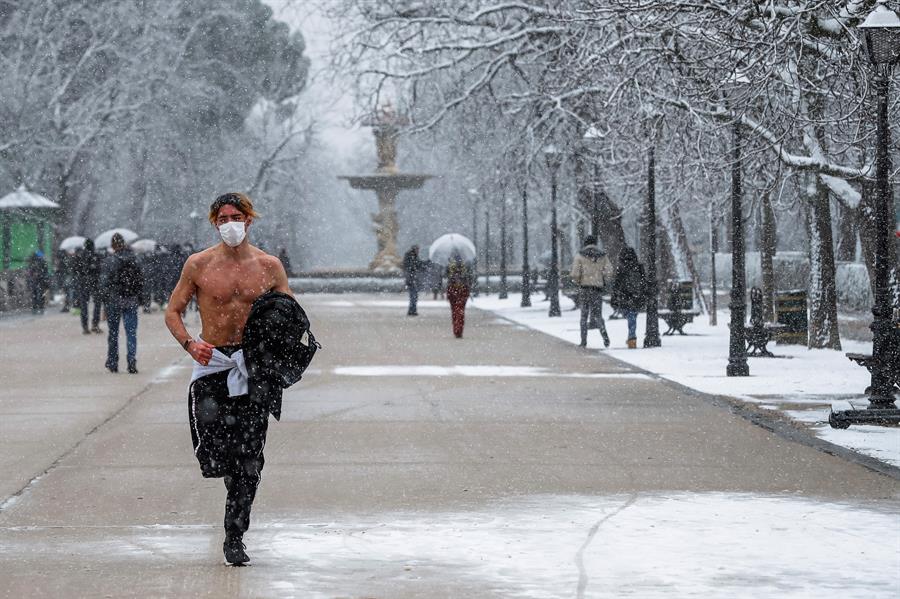Hoy las principales calles y avenidas de casi toda España amanecieron tapizadas de sal, para evitar accidentes. Posteriormente vinieron las fuertes nevadas que dejaron ver estampas de algunos “valientes” que se atrevieron a desafiar al frío y a la pandemia.