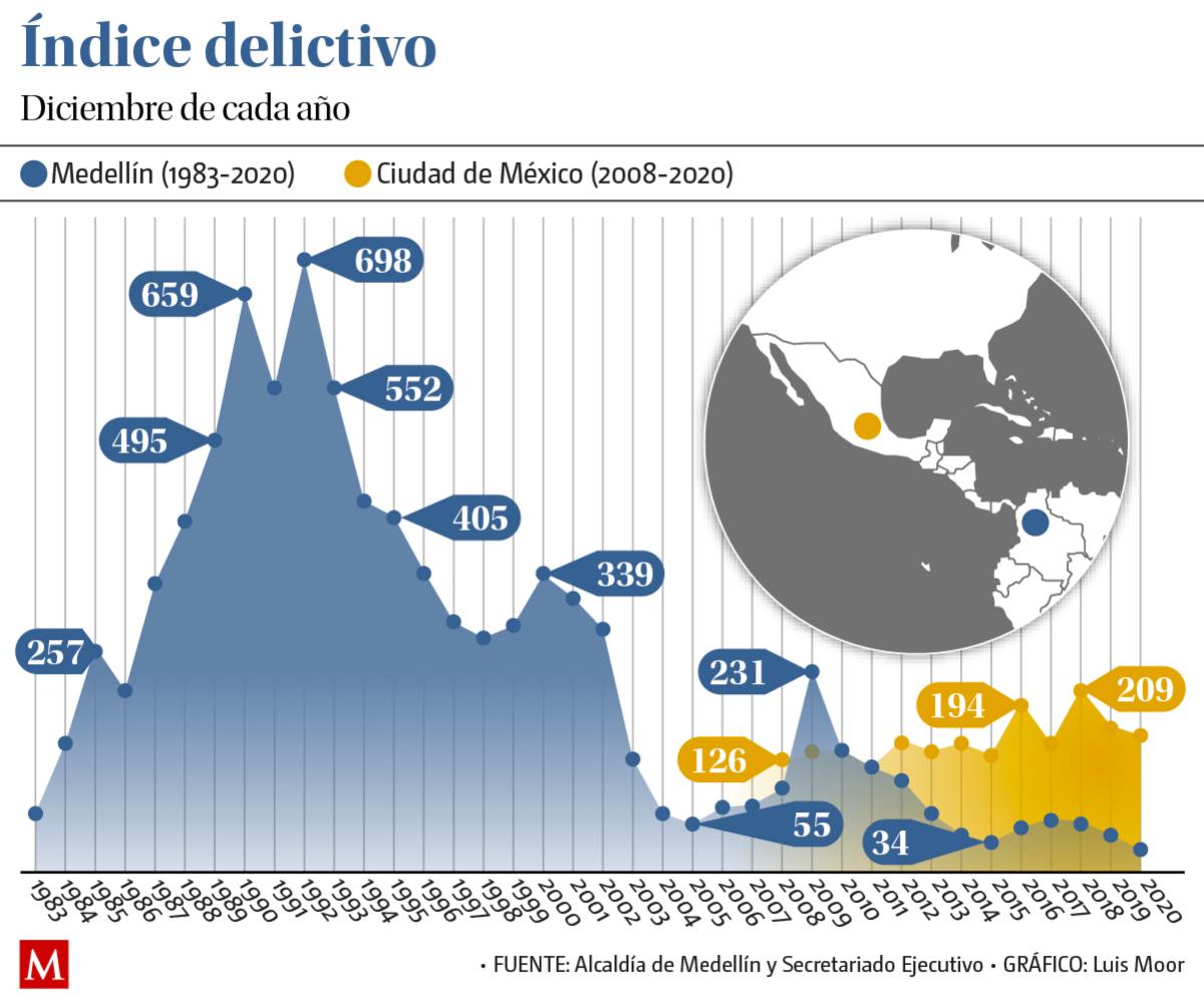 Muy lejos han quedado ya esos momentos oscuros de la metrópoli colombiana. En el transcurso de dos décadas, Medellín pasó de tener el índice más alto de homicidios a ser un referente mundial de urbanismo social y calidad de vida.