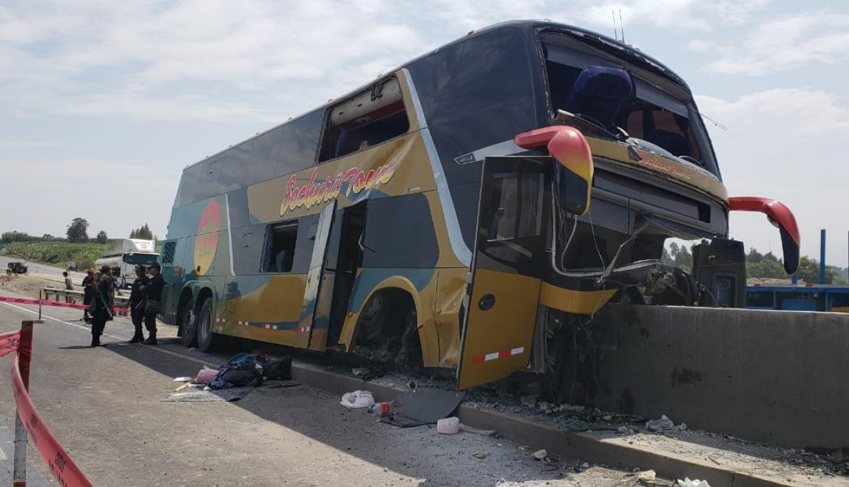 El accidente se produjo en la carretera Panamericana por la localidad de Huara, a 150 kilómetros al norte de Lima, después de que el bus saliera de su carril e impactara contra un muro de contención, dijo por su parte un testigo a la radio local RPP.