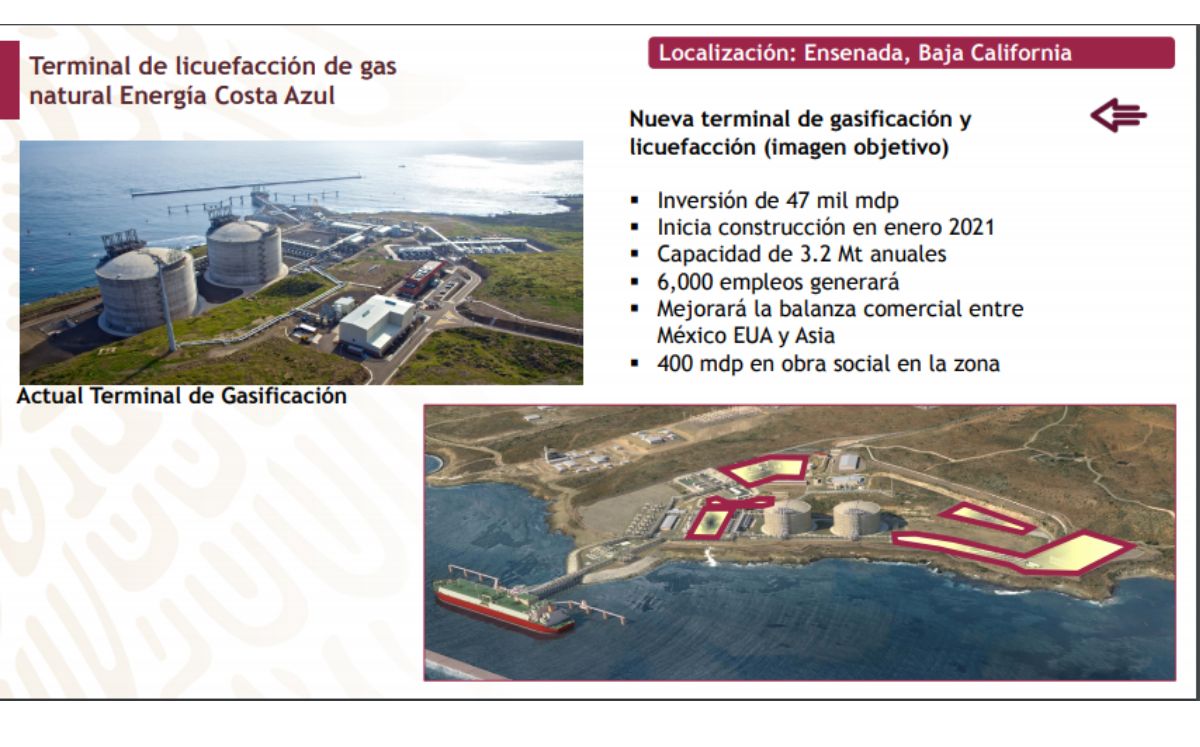 4. Terminal de licuefacción de gas Costa Azul con una inversión de 47 mil mdp bajo esquema de permiso para IEnova para enero de 2021.