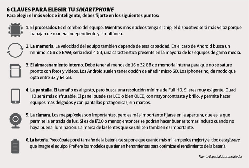 - Que tenga una buena cantidad de memoria RAM y amplia capacidad del procesador. También importa el precio del dispositivo.
