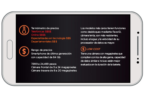 1- Identifica qué necesidades cubrirás con tu celular para que, con base en ello, busques las características apropiadas.2-Si tus requerimientos se basan en telefonía y aplicaciones elementales, como redes sociales. Comprar algo de la gama media, sin una pantalla de cristal o una cámara de gran nivel, te ahorrará varios miles de pesos.3- La capacidad de almacenamiento y velocidad del sistema operativo te permitirá aprovechar realmente un teléfono inteligente.
