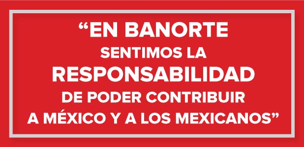 Nosotros en Banorte sentimos que nuestra obligación es ser el motor del desarrollo en el país. Ser el banco fuerte de México, ser un banco de mexicanos para mexicanos, trae la responsabilidad de ser ese motor; el apoyo de seguir dando créditos a las familias, de seguir contribuyendo con los créditos hipotecarios como lo hicimos el año pasado, con más de 170 mil. Poco a poco seguir apoyando con financiamiento a nuestros clientes para que puedan comprar un coche, otorgar créditos para la pequeña y mediana empresa.