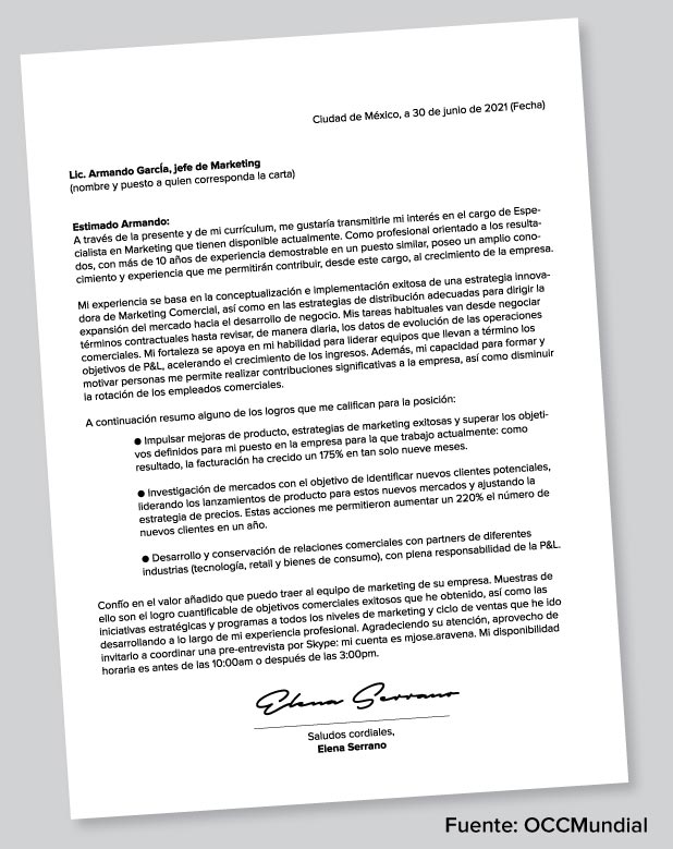 Según el portal de empleo OCCMundial, tener una plantilla de carta de presentación lista te permitirá continuar con el proceso ante este tipo de solicitudes que los departamentos de recursos humanos piden para sus corporativos. Una vez que tengan el machote o plantilla solo tendrás que editar o modificar algunas datos para personalizarla de acuerdo al puesto de trabajo al que te postules.