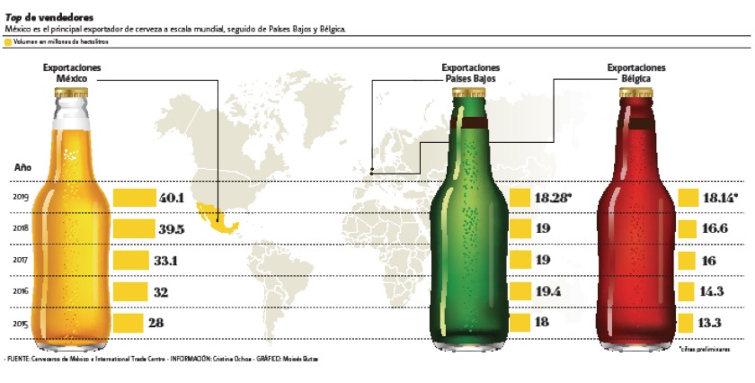 El año pasado el país produjo 124.5 millones de hectolitros, de los cuales 40.1 millones fueron para exportación, lo que da en promedio una producción mensual de 3.34 millones de hectolitros fuera del país, con un valor de 404.8 millones de dólares.