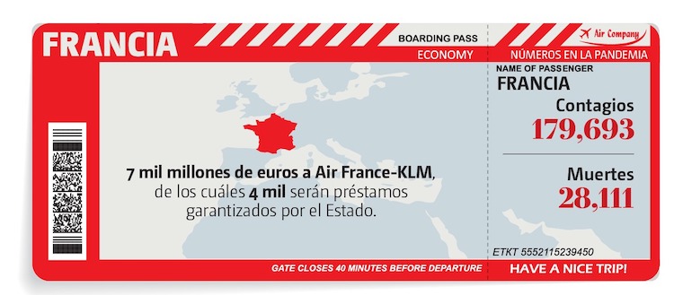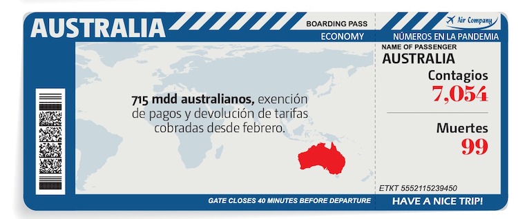 En Europa, Francia otorgó 7 mil millones de euros en apoyos fiscales. El gobierno holandés dará un paquete de ayudas de entre 2 y 4 mil millones de euros a la aerolínea KLM. En tanto, Australia otorgó un paquete de apoyo de 715 millones de dólares locales a la industria aérea.