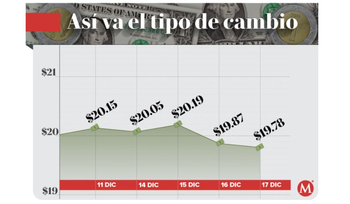 El Banco de México (Banxico) registró la sesión previa un tipo de cambio de 19.95 pesos por dólar.